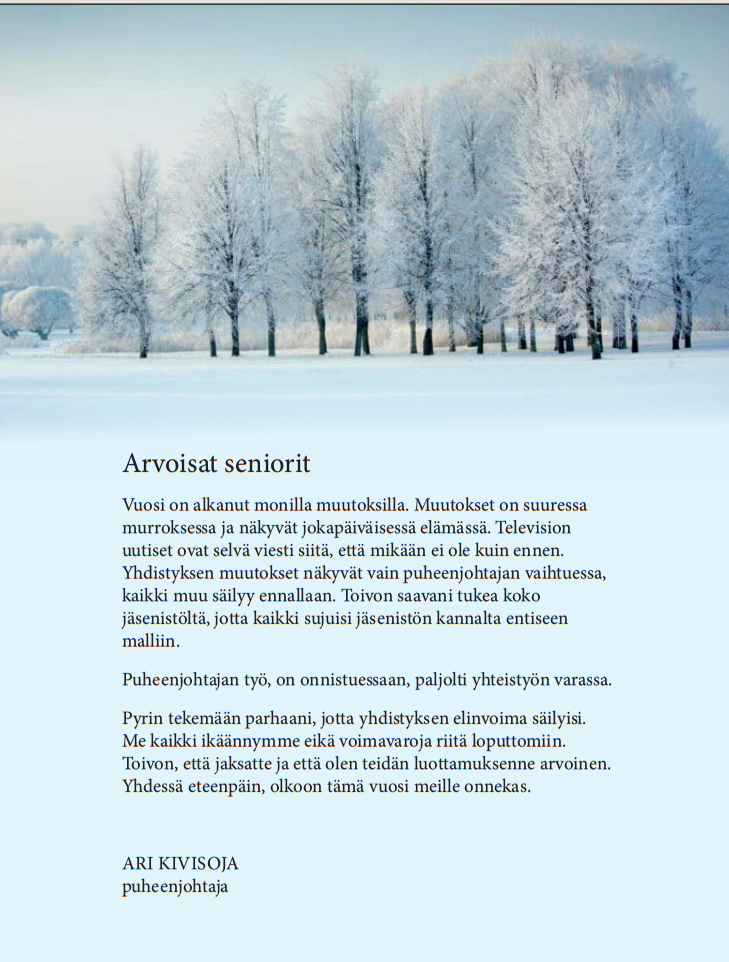 Alla on puheenjohtajan kirje 1/2026 (13.01).